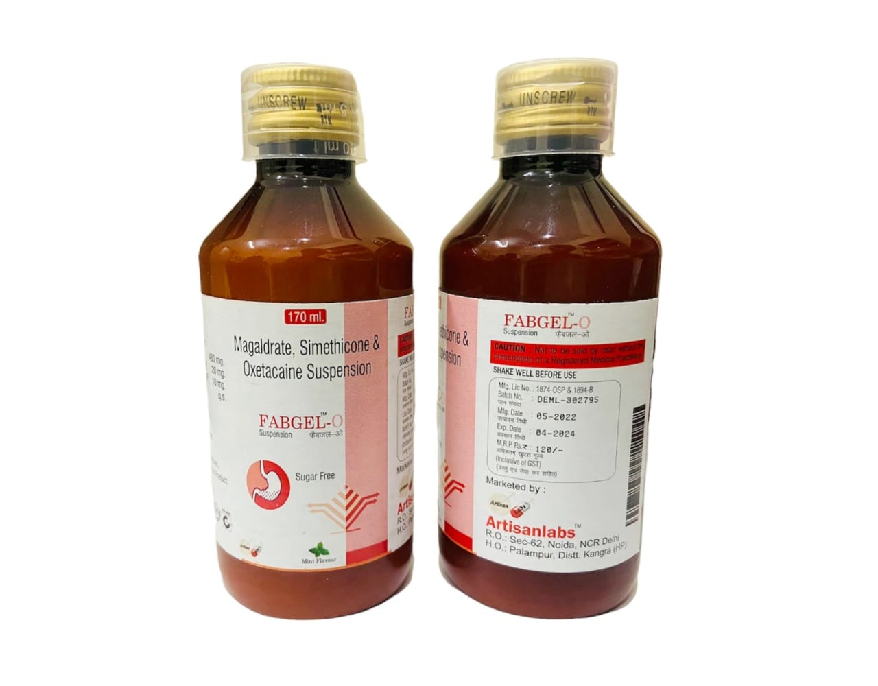 FABGEL-O is a combination of Magaldrate + Simethicone + Oxetacaine. FABGEL-O relieves acidity, heartburn and stomach ulcers. Magaldrate is an inorganic salt that neutralises the excess acid in stomach. Simethicone is an antifoaming medicine which disintegrates gas bubbles and allows easy passage of gas. Oxetacaine is a local anesthetic which provides faster relief from pain due to ulcers or acidic injury in the stomach.