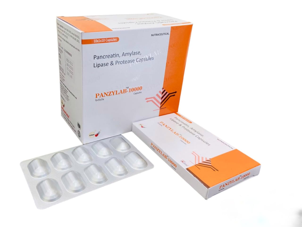 PANZYLAB-10K contains pancreatic enzyme that helps break down fats and proteins. It is best known for its use in treating digestive disorders like Crohn's disease and ulcerative colitis. It is also used to treat conditions like cystic fibrosis and chronic obstructive pulmonary disease (COPD).