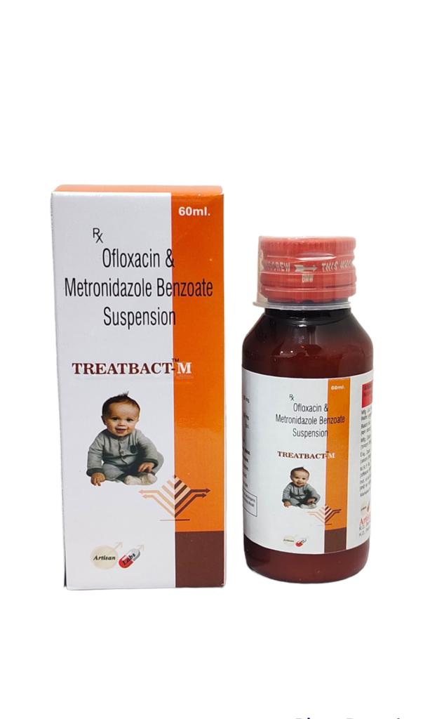 TREATBACT-M is a combination of two antibiotics: Ofloxacin and Metronidazole. Ofloxacin works by preventing the bacterial cells from dividing and repairing, thereby killing the bacteria. Metronidazole kills parasites and anaerobic bacteria that cause infections by damaging their DNA. Together, they treat your infection effectively.